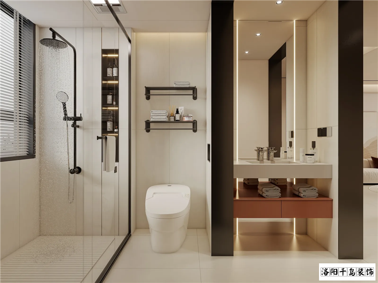 衛生間采用干濕分離的設計,懸空浴浴室柜,墻排下水,智能馬桶,獨立淋浴房!