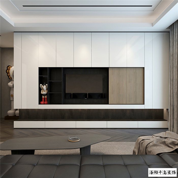 最后,洛陽裝修公司的小編提醒大家,一整面電視柜的設計,要遵循二八原則,盡量80%都有門板蓋住,預留20%開放式空間就可以了,這樣把柜門關起來后,才不會看到很多雜物,會顯得整齊很多!電視柜的顏色建議選白色或者原木色的,就算是小戶型,也不會顯得有壓抑感!