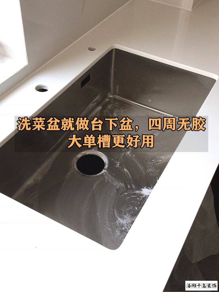 洗菜池就做這種臺下盆,四周沒有膠,不會發霉才更好做衛生,不過一定要記得要做這種大單槽,洗個鍋啊什么的都沒問題,要是想像雙槽一樣分開洗,你就搭配個瀝水籃就好了。